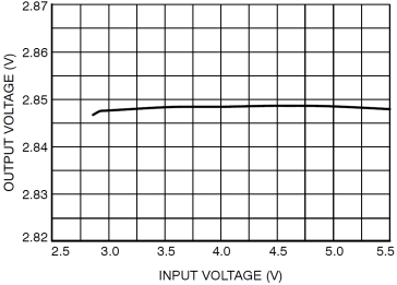 這里VMAX為測試過程中LDO的最大輸出電壓,VMIN為最小輸出電壓,VOUT為標(biāo)稱輸出電壓。通過式子,可以知道LDO的線性調(diào)整率越小穩(wěn)壓能力越出色。圖4為某LDO線性調(diào)整曲線,該LDO在輸入電壓為3.5V~5.0V時輸出電壓相對較高。
