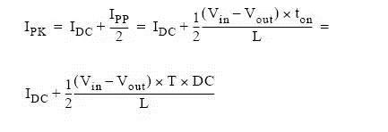 通過上圖我們可以看到,流過電感的最大電流為DC電流加開關峰峰電流的一半。上圖也稱為紋波電流。根據(jù)上述的公式,我們可以計算出峰值電流: