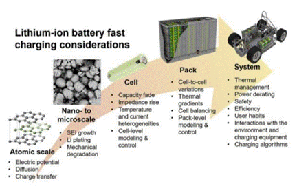 提升充電速度雖然會帶來充電時間上的縮短,但是過高的充電速度也會導致電池的衰降速度加快,影響電動汽車的使用壽命。近日,英國帝國理工大學的Anna Tomaszewska(第一作者,通訊作者)、Xuning Feng(通訊作者)和清華大學的歐陽明高院士等從材料層面到系統(tǒng)層面全方位的對鋰離子電池快充的影響因素、衰降機理和解決方法進行了回顧和綜述。
