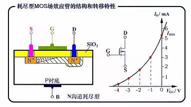 圖1. N溝道耗盡型MOSFET的結(jié)構(gòu)和轉(zhuǎn)移特性曲線