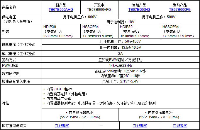 東芝最新開發(fā)的600V TB67B000AHG驅動器IC與現(xiàn)有的500V TB67B000HG引腳兼容,可以輕松替換。此外,東芝還在開發(fā)更緊湊的“TB67B000AFG”版本,采用小型34引腳HSSOP[1]封裝,該產品將于2019年11月上市。