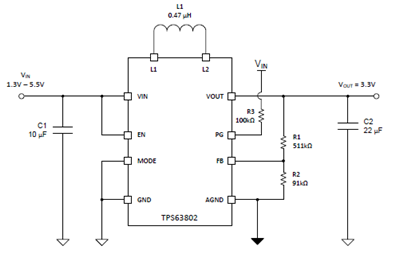 圖2.TPS63802 3.3Vout應(yīng)用電路圖