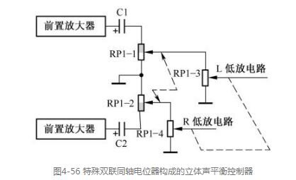 雙聯(lián)同軸電位器構(gòu)成的立體聲平衡控制器電路