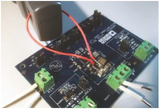 圖 2 顯示了用于該測量的實際設(shè)置。將電感提起,并將兩個端子中的一個斜焊到電路板上。另一個端子通過輔助電線連接到電路板上。這種轉(zhuǎn)換很容易就可以完成。熱氣流脫焊是拆卸電感的一種行之有效的方法。許多 SMD 返修站都提供溫度可調(diào)的熱氣流處理。