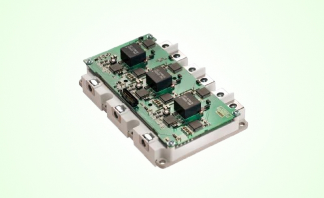 該可擴展平臺中的第一款產(chǎn)品是一個三相1200V/450A碳化硅MOSFET智能功率模塊,它具有低導通損耗特性,導通電阻為3.25毫歐(mOhm),同時具有低開關損耗特性,在600V/300A時導通和關斷能量分別為8.3mJ和11.2mJ。相比最先進的IGBT功率模塊,其將損耗降低了至少三倍。新模塊通過一個輕質的鋁碳化硅(AlSiC)針翅底板進行水冷,結到流體的熱阻為0.15°C / W。該智能功率模塊可承受高達3600V的隔離電壓(經(jīng)過50Hz、1分鐘的耐壓測試)。