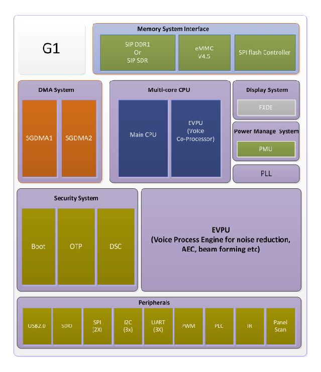 內(nèi)置 Audio Codec 的 G1 芯片架構(gòu)圖