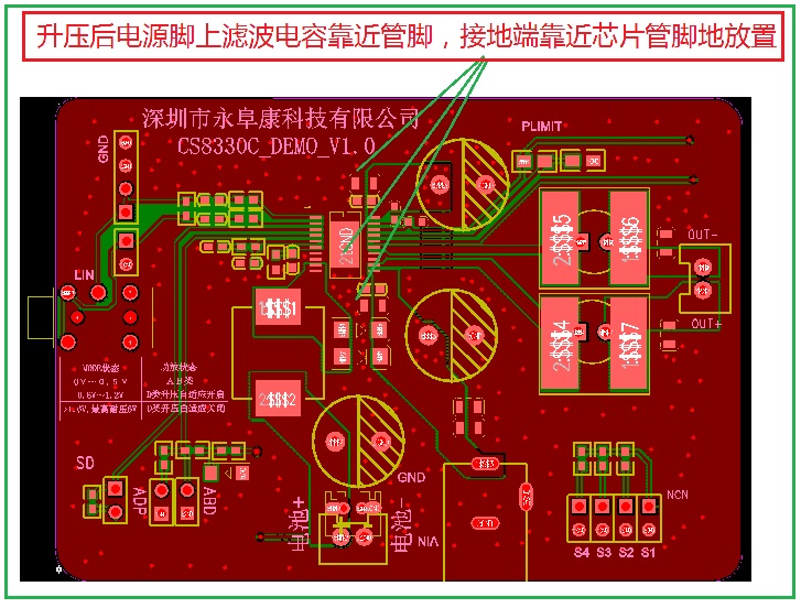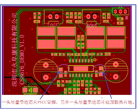 (1). 音頻功放芯片盡量靠近主控解碼芯片,音頻信號(hào)走線(xiàn)盡量短。