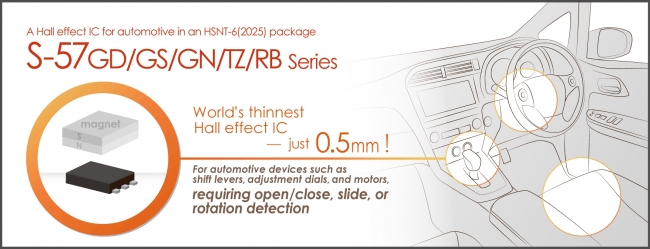 艾普凌科有限公司(ABLIC Inc.,總裁:石合信正,總部:東京都港區(qū);以下簡(jiǎn)稱(chēng)“ABLIC”)發(fā)布了五款車(chē)載用霍爾效應(yīng)IC——S-57GD、S-57GS、S-57GN、S-57TZ和S-57RB(*1),其均采用0.5mm的全球最薄(*2)封裝。這一整套產(chǎn)品可讓客戶(hù)從中選擇最適合自身需求的產(chǎn)品。