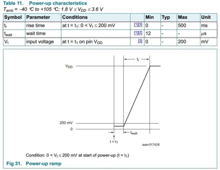 我們都知道MCU都有一定的上電時序要求,例如圖3為某MCU的上電要求,根據(jù)圖中可知該MCU對上電的要求有: