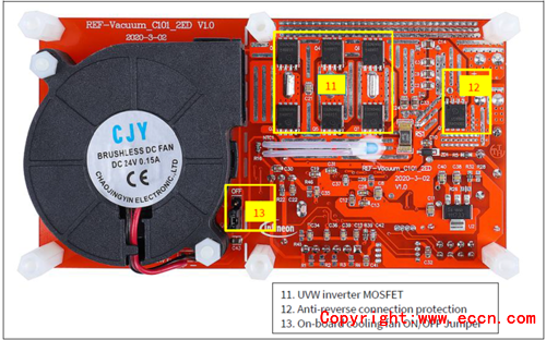 圖8. 參考設計REF-Vacuum-C101-2ED外形圖和功能分布圖(正視)