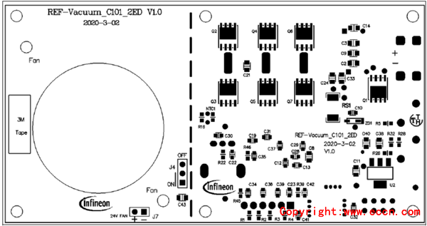 圖12. 參考設計REF-Vacuum-C101-2ED PCB裝配圖(正面)