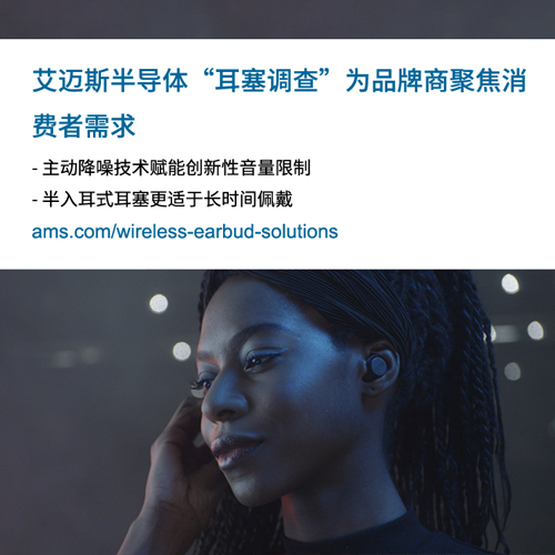 全球領先的高性能傳感器解決方案供應商艾邁斯半導體(ams AG,瑞士股票交易所股票代碼:AMS)公布了其針對2,000多名耳塞消費者的調查結果。此次調查向耳機品牌商表明,每天多次使用耳塞的消費者希望耳塞佩戴舒適、音質出色、電池續(xù)航時間長,同時又不會損害聽力。