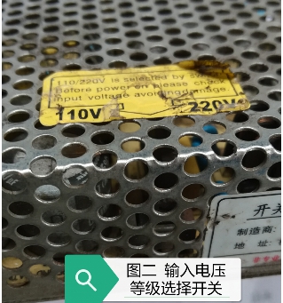 其次,我們來看一下有關(guān)開關(guān)電源輸入、輸出電壓的事項(xiàng)。因部分開關(guān)電源生產(chǎn)廠家的在面對國內(nèi)市場的同時,還兼顧歐美日市場,故其一臺開關(guān)電源同時有AC110V和AC220V兩種輸入電壓等級。此類開關(guān)電源,多會通過線路板上所設(shè)的一支選擇切換開關(guān),用以完成電壓等級選擇(如圖二示)。正因如此,我們在安裝使用前,必須要核對開關(guān)電源輸入電壓等級開關(guān)是否同實(shí)際輸入電壓匹配,否則極易導(dǎo)致開關(guān)電源發(fā)生損壞故障!