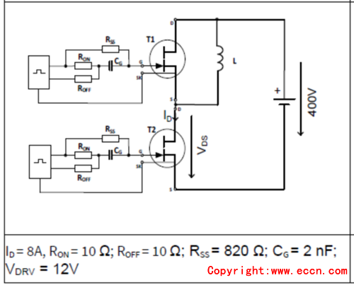 圖1. IGT40R070D1 E8220電感負(fù)載開關(guān)時(shí)間測(cè)試電路
