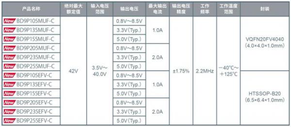 <BD9P系列的產(chǎn)品陣容>