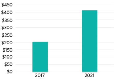 升壓轉(zhuǎn)換器為轉(zhuǎn)換器,其輸出電壓高于源電壓?v觀(guān)升壓轉(zhuǎn)換器市場(chǎng),根據(jù)行業(yè)分析數(shù)據(jù),VIN (5V)升壓電源管理電路增長(zhǎng)最快(圖3所示為全球升壓轉(zhuǎn)換器市場(chǎng)的營(yíng)業(yè)額預(yù)測(cè))。根據(jù)推動(dòng)這種增長(zhǎng)的IoT應(yīng)用的要求,設(shè)計(jì)師正在尋求能夠提供較低電壓軌、較長(zhǎng)電池壽命以及較小方案尺寸的升壓轉(zhuǎn)換器。