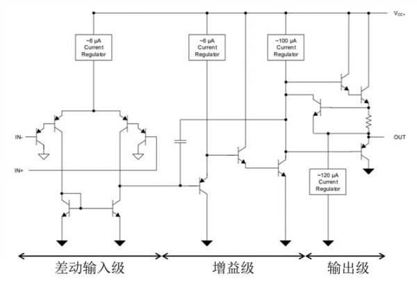 雖然各家廠商推出的運算放大器性能與規(guī)格互有差異,但是一般而言標準的運算放大器都包含下列三個部分。