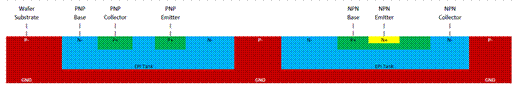 圖2. 運放NPN和PNP管結(jié)構(gòu)示意圖