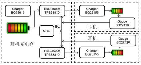 b. 充電倉端采用2顆TPS63810分別給2個耳機端供電。