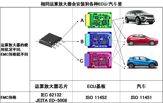 運(yùn)算放大器用途廣泛,相同運(yùn)算放大器會(huì)安裝到各種電氣電子設(shè)備里。各種設(shè)備要求的EMC規(guī)格有所不同,所以對(duì)于單體運(yùn)算放大器的抗EMI干擾性能的比較和測(cè)試是非常重要的。