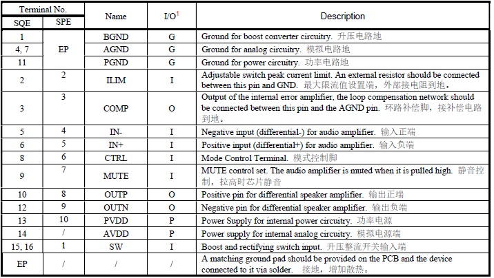 6W (VBAT=3.3~4.2V, RL=4Ω, THD+N<1%, 20-20kHz