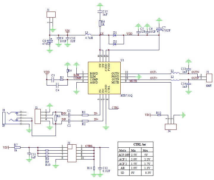 HT8731具有AB類(lèi)和D類(lèi)的自由切換功能,在受到D類(lèi)功放EMI干擾困擾時(shí),可隨時(shí)切換至AB類(lèi)音頻功放模式。