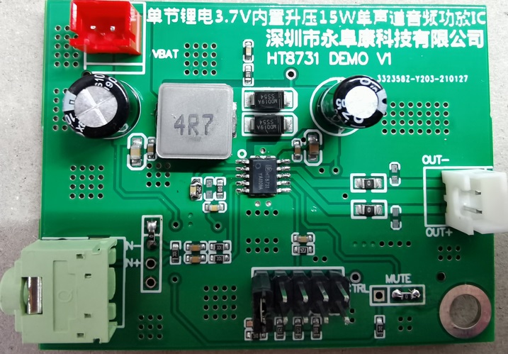 目前,戶(hù)外藍(lán)牙音箱(包括手提音箱及拉桿音箱等產(chǎn)品類(lèi)型)深受消費(fèi)者的喜愛(ài),其便攜性既能滿(mǎn)足家用,也能滿(mǎn)足一定時(shí)間內(nèi)的戶(hù)外使用,其音質(zhì)效果優(yōu)于一般的小藍(lán)牙音箱,適合戶(hù)外活動(dòng)廣場(chǎng)舞等場(chǎng)合。因其體積重量要求的要求決定了供電是以單節(jié)18650鋰電池為供電電源。深圳市永阜康科技有限公司最新推廣的內(nèi)置自適應(yīng)動(dòng)態(tài)升壓15W單聲道F類(lèi)功放IC-HT8731,該芯片音質(zhì)表現(xiàn)高音通透、低音震撼、人聲甜美,能完美實(shí)現(xiàn)3.7V單節(jié)鋰電供電音箱產(chǎn)品的性能升級(jí)迭代。