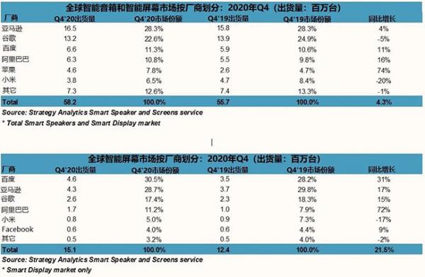 2020年Q4需求強(qiáng)勁,全球智能音箱銷量突破1.5億部