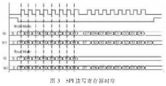 CC2500是一種單片2.4 GHz收發(fā)器,通過SPI接口與MCU建立聯(lián)系,MCU在開始要完成對CC2500寄存器的配置,其讀寫時序如圖3所示。首先設置IOCFG2,IOCFG0.TX發(fā)送字節(jié)個數(shù),包長度,發(fā)射功率等寄存器,完成對CC2500的初始化。