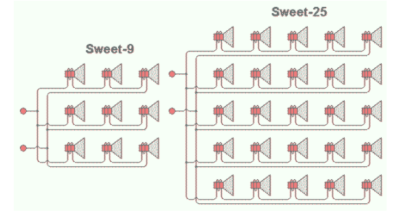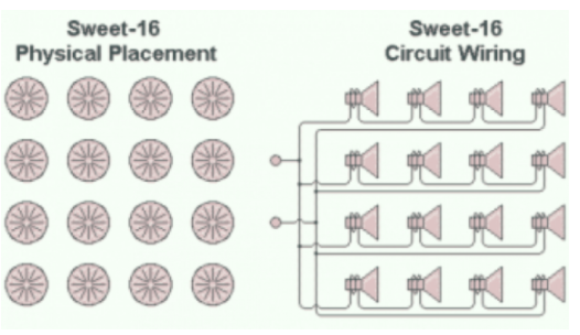 舉例來說,如果每個揚(yáng)聲器呈現(xiàn)8Ω的音圈阻抗,則16個揚(yáng)聲器組成的復(fù)合揚(yáng)聲器也將呈現(xiàn)相同的8Ω。