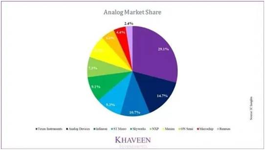 盡管擁有所有優(yōu)勢,該公司仍面臨激烈的競爭,市場領(lǐng)先地位不斷下降,因?yàn)槠涫袌龇蓊~處于下降趨勢,而競爭對(duì)手則積極參與并購活動(dòng)以獲取市場份額,例如第二名的Analog Devices 就是通過這樣的方式縮小了他們與德州儀器之間的差距。