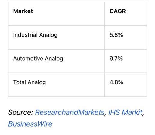 總之,該公司將在2020年繼續(xù)保持模擬市場的領(lǐng)先地位,其收入增長將保持平穩(wěn)。它仍然致力于長期專注于工業(yè)和汽車市場,尤其是預(yù)計(jì)將超過整體模擬市場。我們更佩服該公司在工業(yè)市場上的實(shí)力,并在亞洲市場享有很高的知名度。