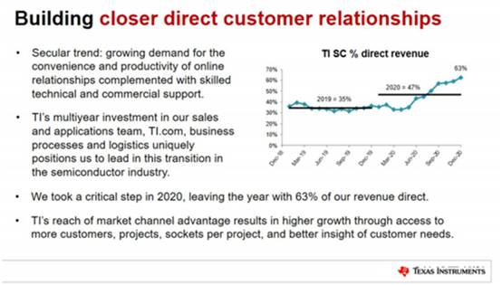 到2020年底,其直銷渠道的銷售百分比已大幅增長至63%,幾乎占收入的三分之二,回到2019年,這個(gè)數(shù)字為35%。通過與最大客戶的緊密聯(lián)系,我們看到了潛在的優(yōu)勢使其有更多設(shè)計(jì)項(xiàng)目的機(jī)會(huì),并有機(jī)會(huì)增加對(duì)這些客戶的產(chǎn)品銷售。