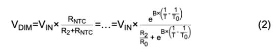 Steinhart-Hart方程表明溫度與NTC電阻值之間的關(guān)系是非線性的,因此電阻分壓器與溫度也具有非線性關(guān)系。因此,由于溫度引起的電流減小也是非線性的?梢允褂霉2估算這種下降: