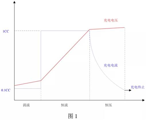 階段1:涓流充電——涓流充電用來先對完全放電的電池單元進行預(yù)充(恢復(fù)性充電)。在電池電壓低于3V左右時采用涓流充電,涓流充電電流是恒流充電電流的十分之一即0.1c(以恒定充電電流為1A舉例,則涓流充電電流為100mA)。