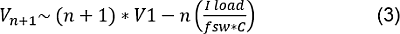 在公式(1)中,可以看出Vn+1很大程度上由n的倍數(shù)決定,但受到二級(jí)管正向壓降相關(guān)的“誤差項(xiàng)”和電荷泵轉(zhuǎn)換電容紋波電壓的影響,會(huì)有所減少。假設(shè)所有二極管都是相同類型的,那么它們的正向電壓等于: