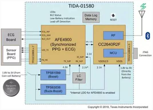 圖5:TI公司ECG或PPG可穿戴式監(jiān)護(hù)系統(tǒng)參考設(shè)計(圖源:TI)