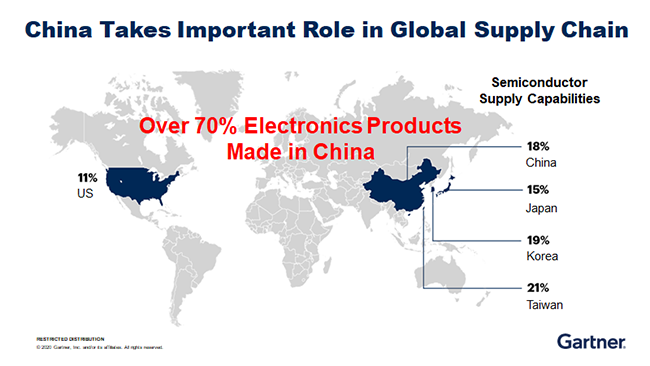 在國內(nèi)市場方面,中國實(shí)際上從五年前就已在半導(dǎo)體自由化方面付諸了行動。根據(jù)Gartner的預(yù)測,預(yù)計(jì)在2025年,國內(nèi)半導(dǎo)體公司市場份額,有望從15%突破到30%。如今的“缺芯”潮對于國內(nèi)半導(dǎo)體公司而言,創(chuàng)造了千載難逢的機(jī)會。
