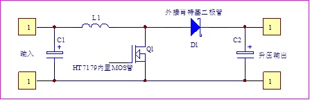 HT7179內(nèi)部集成15A的MOS開關(guān)管,外圍除了必須的電感之外,關(guān)鍵器件就是肖特基二極管。原理上是一種常見的開關(guān)直流boost升壓DC-DC電路,它通過開關(guān)管導(dǎo)通和關(guān)斷來控制電感儲存和釋放能量,從而使輸出電壓比輸入電壓高;镜墓ぷ髟砣缦拢