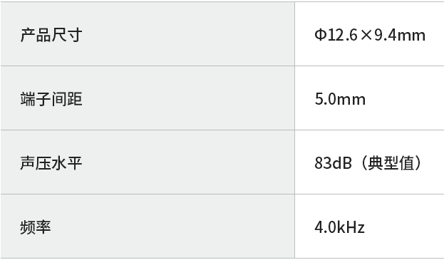 ●    體積小、高聲壓:兼顧易聽的聲壓和小型化,實現(xiàn)了元件小型化和電路板節(jié)省空間