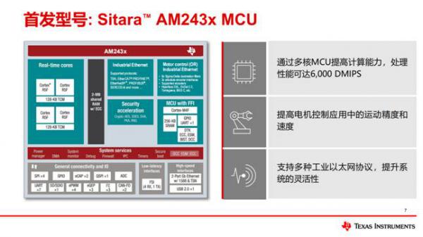 近期TI發(fā)布了一款高性能MCU-Sitara™ AM2x系列,它兼具了傳統(tǒng)MPU的高性能和傳統(tǒng)MCU的設計簡易性。德州儀器 (TI) 中國區(qū)嵌入式與DLP應用技術總監(jiān)師英介紹了該新產品的優(yōu)勢。他表示:“Sitara AM2x系列MCU推動了邊緣端的實時控制、網絡互聯和智能分析。處理能力相比現有MCU提高10倍。”