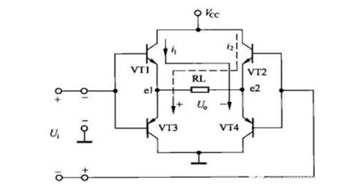 電源電壓VCC加到放大管VT1,VT2的集電極,為他們供電。靜態(tài)時,由于沒有信號輸入,放大管VT1~VT4截止,無電壓輸出,RL上無電流流過。當(dāng)輸入Ui的正半周信號時,VT1和VT4導(dǎo)通,它們的集電極電流由VCC經(jīng)VT1,RL,VT4到地構(gòu)成回路,形成輸出信號的上半周;當(dāng)輸入Ui的負(fù)半周信號時,VT2,VT3導(dǎo)通,它們的集電極電流由VCC,VT2,RL,VT3到地構(gòu)成回路,形成輸出信號的負(fù)半周。這樣,就可以得到一個完整的信號。