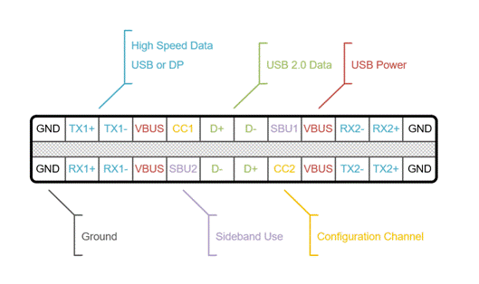Type-C 有著強(qiáng)大的兼容性,除了保留 D+/D- 引腳支持 USB 2.0 數(shù)據(jù)傳輸外,還在規(guī)范定義上兼容其他協(xié)議標(biāo)準(zhǔn)的信號(hào)傳輸,例如對(duì) DP 信號(hào)傳輸?shù)闹С。因此成為能夠廣泛連接智能手機(jī)、 PC、游戲主機(jī)、存儲(chǔ)設(shè)備和擴(kuò)展塢等絕大部分電子設(shè)備的標(biāo)準(zhǔn)化接口,實(shí)現(xiàn)數(shù)據(jù)傳輸和設(shè)備充電的統(tǒng)一。