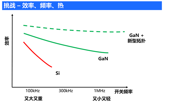 提高效率是小型化的必要途徑,它不但可以減少損耗,同時(shí)還能減少散熱,給高頻小型化提供了必要的條件。只有效率提升了,單位體積散熱減少,同時(shí)通過高頻化設(shè)計(jì),功率密度才會(huì)大大的提升。