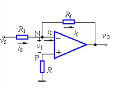 在反相放大電路中,信號電壓通過電阻R1加至運放的反相輸入端,輸出電壓Vo通過反饋電阻Rf反饋到運放的反相輸入端,構(gòu)成電壓并聯(lián)負反饋放大電路。