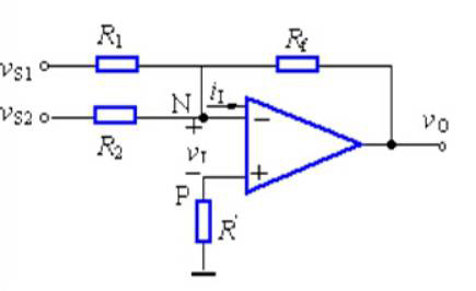 如下圖1-2,是運放實現(xiàn)的加法器,用虛短和虛斷的方法來分析此電路。