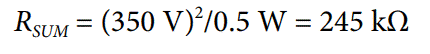 150 V,RBOT達到 100 V。使用額定功率為 1 /2瓦的 2512 電阻,設(shè)計必須將每個電阻器的功耗(V2/R) 限制在 0.5 W