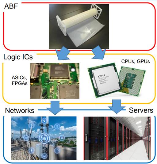 最終,革命性的ABF——味之素堆積膜(Ajinomoto Build-Up Film)問世。這一材料隨即很快吸引了半導體行業(yè)巨頭英特爾的注意,ABF材料被英特爾用作個人電腦和服務器的中央處理器的首選封裝技術(shù),因其強大的絕緣性能有助于高端芯片的快速計算。也正是由此,英特爾公司在20世紀90年代末開發(fā)出了更強大的微處理器。