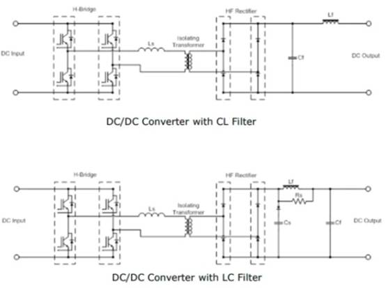 這是本質(zhì)上是隔離的單向轉(zhuǎn)換器。它的初級(jí)繞組借助于單相H橋逆變器來驅(qū)動(dòng)。直流輸出是通過全橋整流器產(chǎn)生的,并且為了直流輸出的清潔度需要一個(gè)輸出濾波器,可以是CL或LC。帶有LC和CL濾波器的DC-DC轉(zhuǎn)換器如圖1所示。在CL濾波器的情況下,不需要整流二極管來整流二極管。由于整流器電流不連續(xù),H橋中的電流波形為三角形。較高的電流峰值導(dǎo)致三角波形效率低下。如圖2所示,在400直流輸出和500直流輸入下有120A電流充電。使用LC輸出濾波器會(huì)產(chǎn)生連續(xù)電流,該連續(xù)電流會(huì)在H橋中產(chǎn)生具有低電流峰值的方波。與使用LC濾波器有關(guān)的另一個(gè)優(yōu)勢(shì)是效率高[1]。LC濾波器的波形如圖3所示。