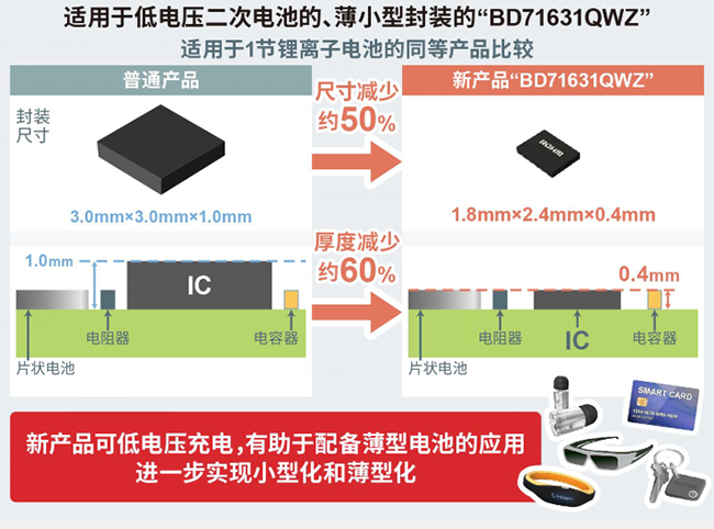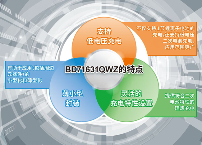 ROHM開發(fā)出充電控制IC“BD71631QWZ”,支持新型二次電池等低電壓充電
